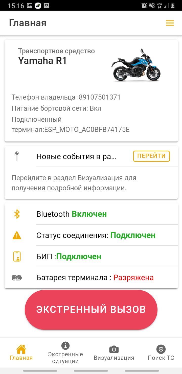 5. Режим «Экстренный вызов». Режим вызова экстренных служб, активируется из состояния «Мониторинг» при наступлении условленных внештатных ситуаций принудительно или автоматически.